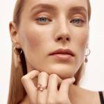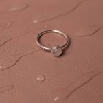 Pierścionek z różowym kwarcem, wykonany ręcznie ze srebra pr. 925, a następnie pozłocony różowym złotem. Wielkość minerału: 5 mm. Grubość obrączki: 1,5 mm.
