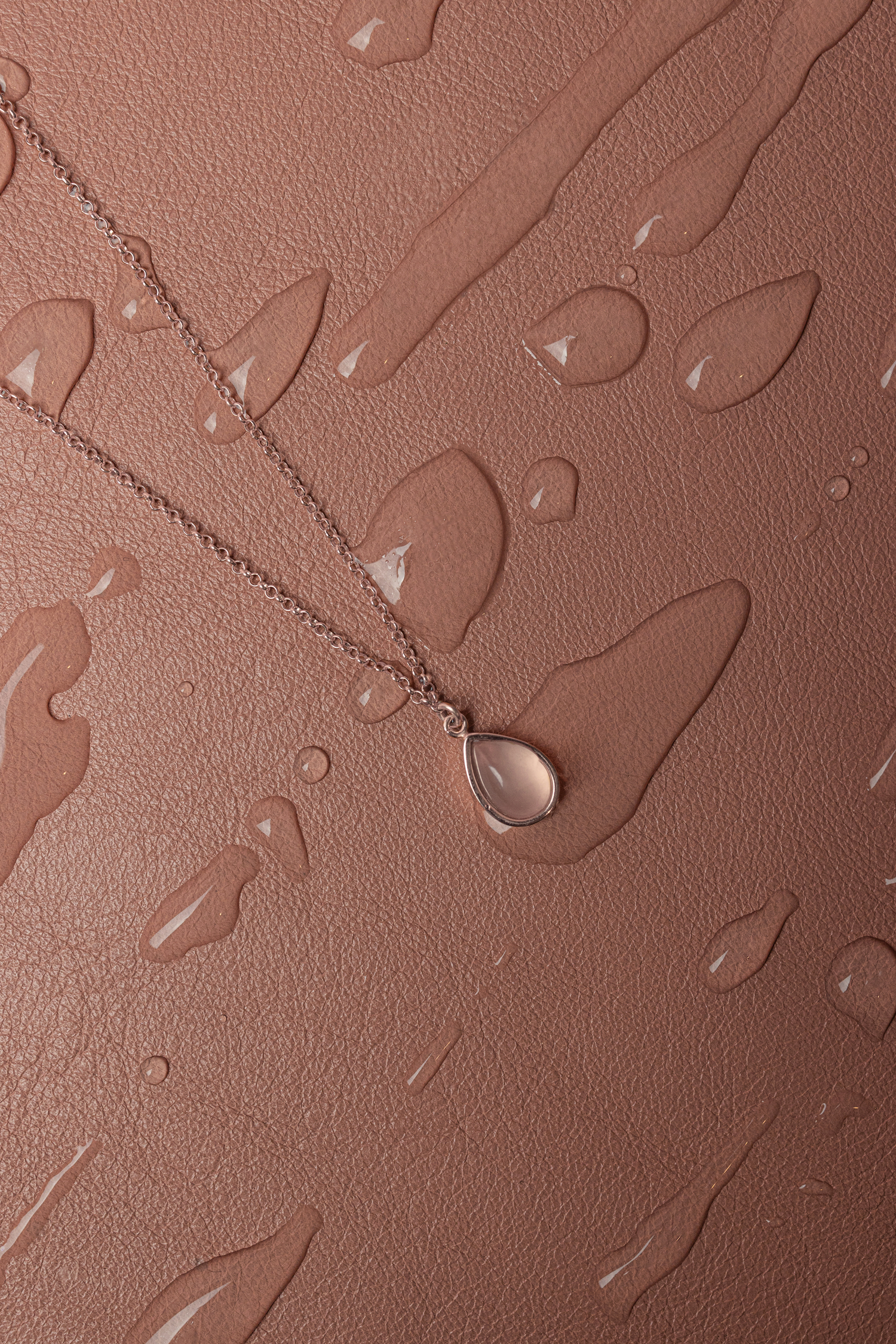 A necklace in the form of a chain with a rose quartz pendant, handmade with sterling silver and gilded with rose gold. Chain length 40 - 42 cm. The size of the mineral: 6 x 9 mm.