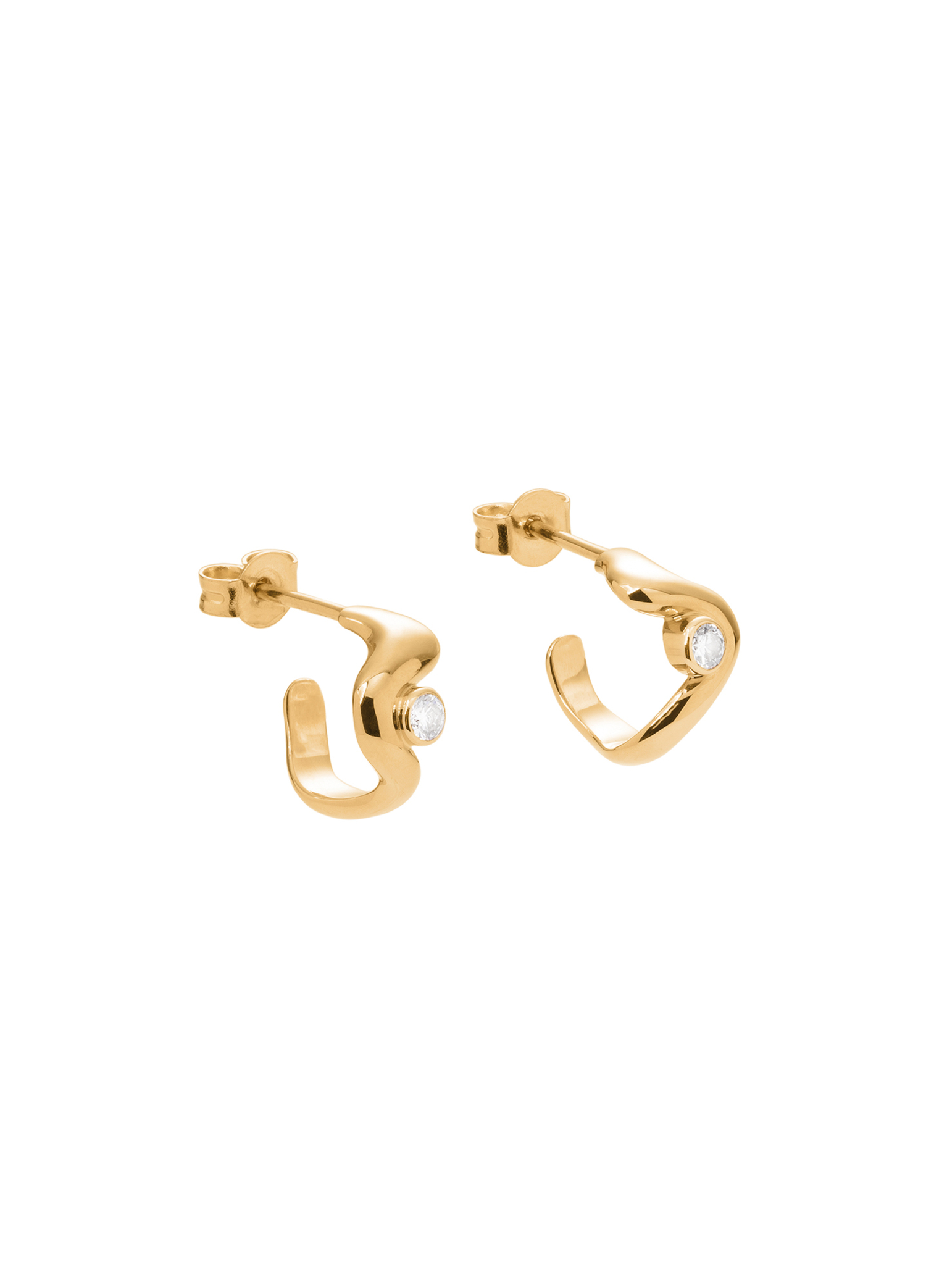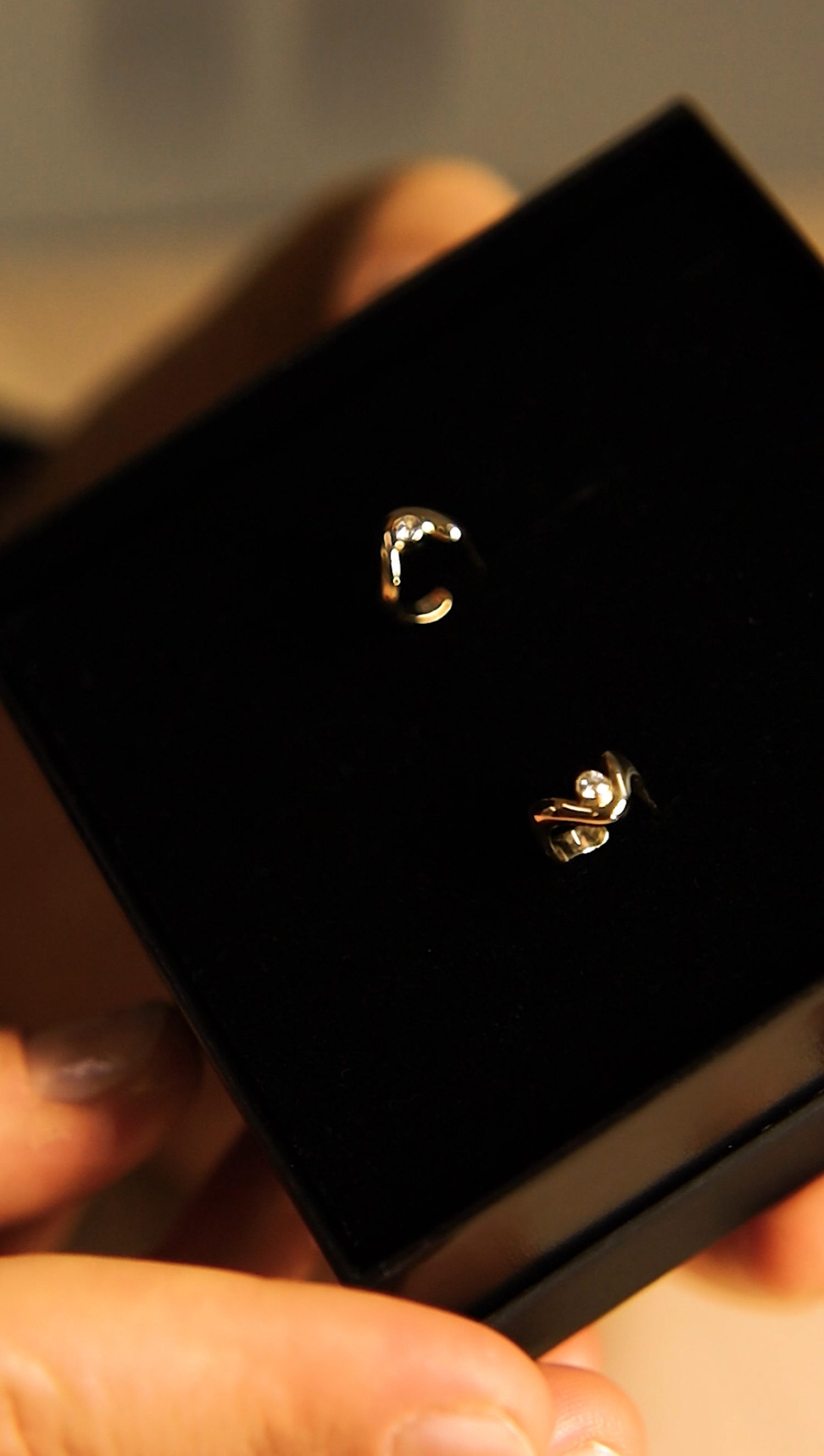 W sercu każdego kolczyka lśni brylant, a ich łączna masa to 0,12 ct (kolor GH, czystość VS1). Kamienie osadzone są tak, aby wydobywać blask z wnętrza złotej fali, tworząc iskrzący punkt światła pośród gładkiej, lustrującej powierzchni metalu. Ta subtelna gra światła i formy podkreśla wrażenie lekkości i harmonii, potęgując wrażenie obcowania z biżuterią doskonałą pod względem estetyki oraz rzemiosła.