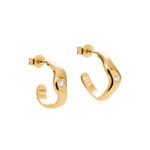 Unikatowe kolczyki ze złota próby 585, wyrzeźbione ręcznie w jednym egzemplarzu, łączą subtelną elegancję z wyrafinowanym designem. Charakteryzują się płynnie wygiętą formą, której kształt przyciąga wzrok swoją harmonią i lekkością. W kolczykach osadzone są brylanty o łącznej masie 0,06 ct (kolor GH, czystość VS1), których blask doskonale komponuje się z ciepłym połyskiem złota, wprowadzając do całości nutę luksusu.