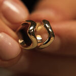 Kolczyki o organicznej, zaokrąglonej formie przyciągają uwagę swoją płynnością i harmonią, a ich gładka powierzchnia doskonale odbija światło, podkreślając szlachetność złota. To wyjątkowy akcent, który doskonale uzupełni każdą stylizację, wprowadzając do niej subtelny, ale wyrafinowany i unikatowy detal.